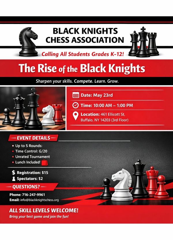 Students in Grades K–12 are invited to compete, learn, and grow at the Black Knights Chess Association’s Spring Tournament!